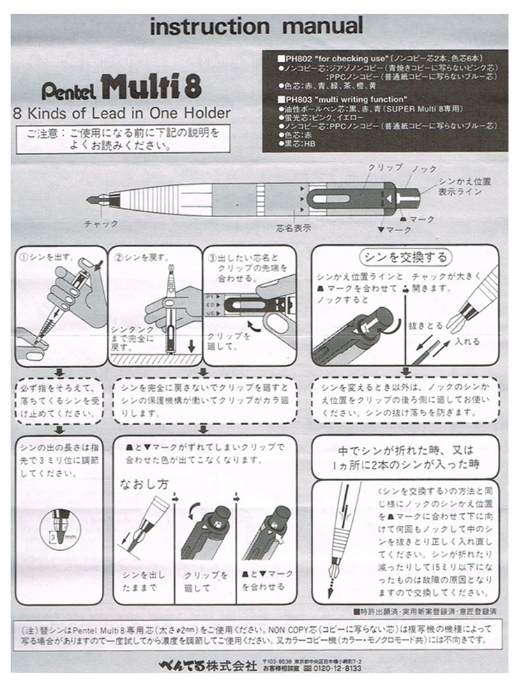 ●使用2mm筆芯(替芯型號:CH2、CN2-P、CN2-D或者您可以直接購買 8色x2支即共16支筆芯的“CH2BP8M”替芯組,我司也有販售CH2BP8M喔~)