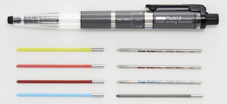 Pentel經典多色機能筆,專為製圖繪圖設計,也適合日常使用,可切換原子筆、色鉛筆、鉛筆,非常方便。