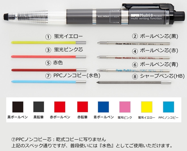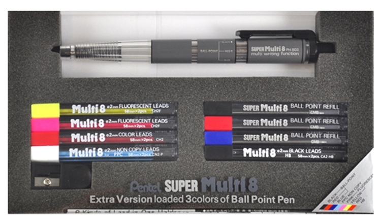 ● 【品名】日本Pentel飛龍Super Multi 8合1機能色鉛筆組PH803ST(2mm筆芯,替芯CH2BP8M;附筆芯削鉛筆器)製圖筆繪圖筆Technical Drawing Pen