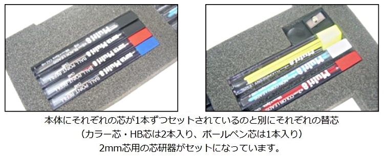 ● 本賣場為"八合一機能筆組合",筆管本體內8色都有各一支筆芯,另再附八色筆芯各一盒(每盒內含筆芯各2支,原子筆則為一支),組合內還附有筆芯削筆器