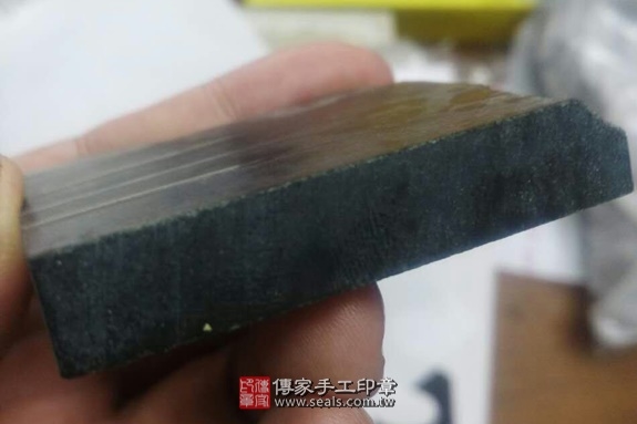 4. 以刻印來說,因為墨玉的硬度很硬,這種印材無法用「篆刻刀」去刻,只能使用手工繪圖和製作模具,以及用大型噴砂機去沖型,才能讓文字刻印在墨玉印章上面。