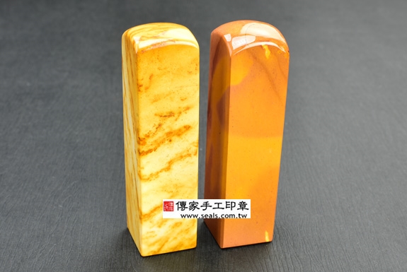 傳家手工印章印章材質示意圖:頂級三彩蛋黃石印章(黃色基底) 印章照片示意圖