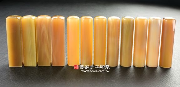 傳家手工印章印章材質示意圖:頂級南非鳳梨黃純金色赤牛角 印章照片示意圖