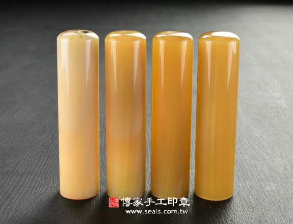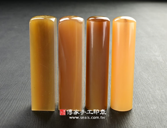 傳家手工印章印章材質示意圖:頂級南非鳳梨黃純金色赤牛角 印章照片示意圖