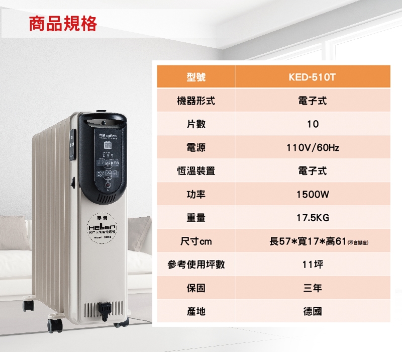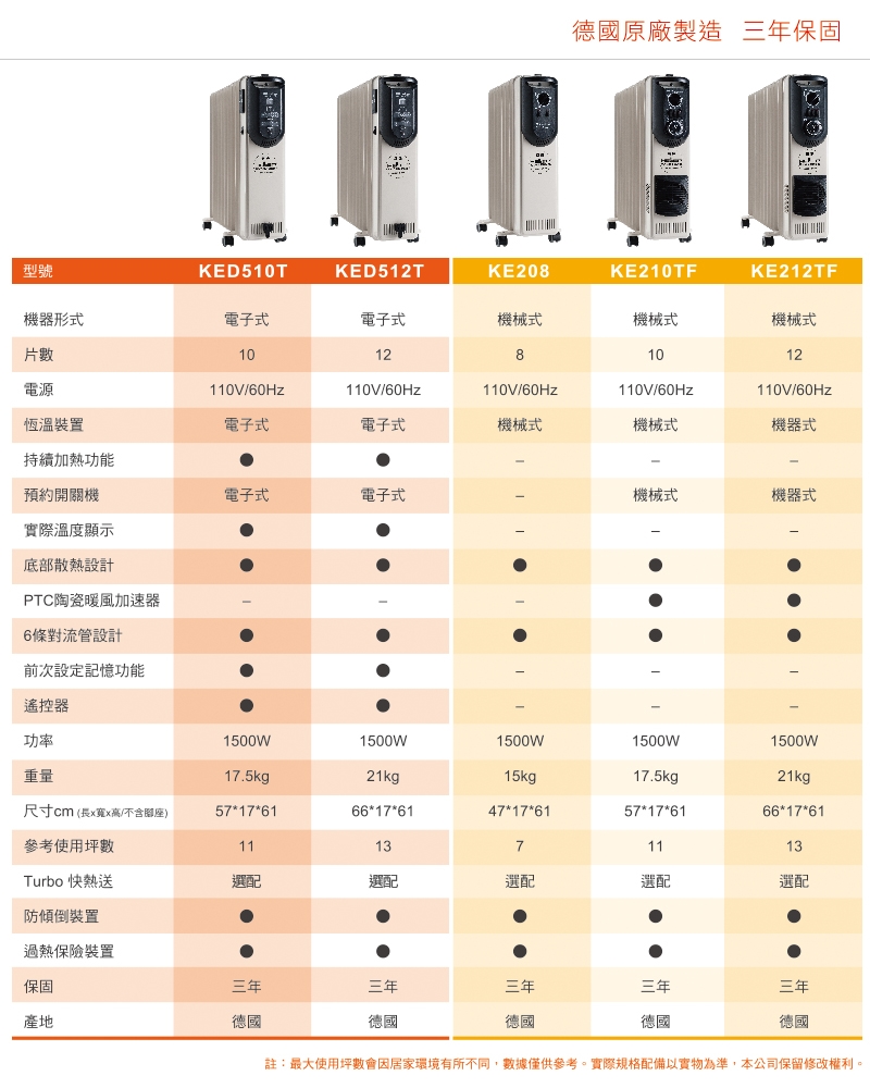 註: 電暖器使用坪數參考,會因居家環境有所不同。數據僅供消費者參考使用。