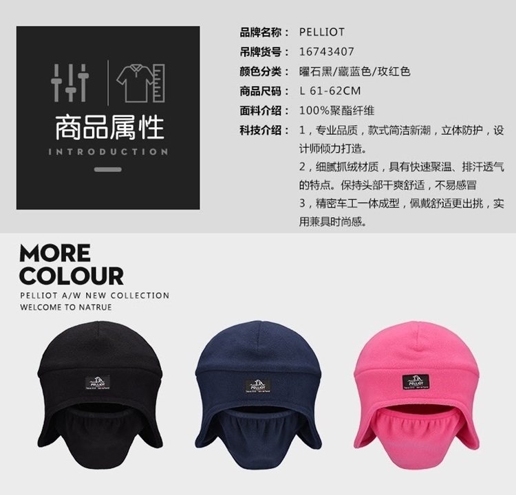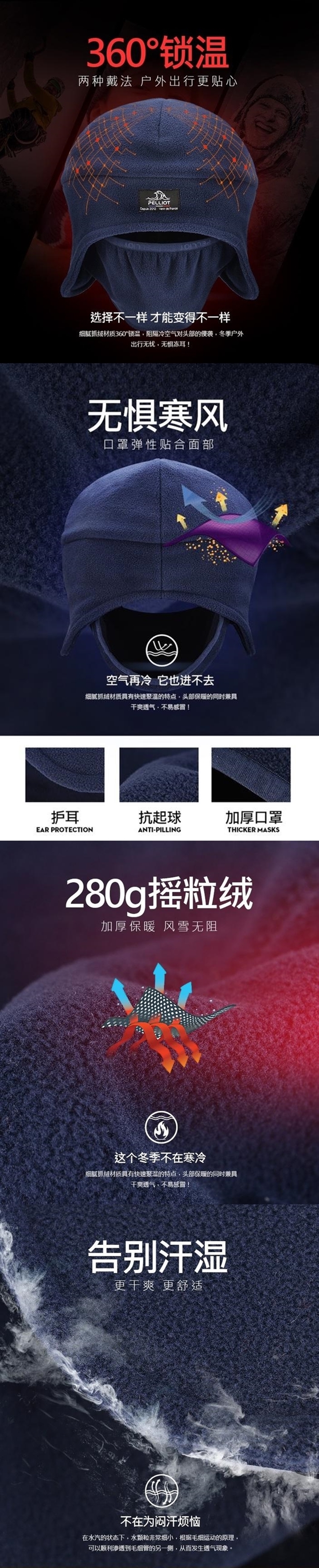 ●【品名】法國Pelliot男女戶外防寒帽保暖帽抓絨帽防風保暖帽16743407細絨毛帽(含口罩口且護耳)滑雪帽登山帽 適騎行...