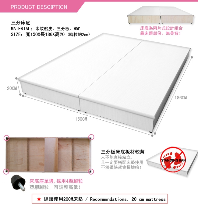 ◆ 商品僅含雙人床頭片+雙人床底座(不含其他商品)