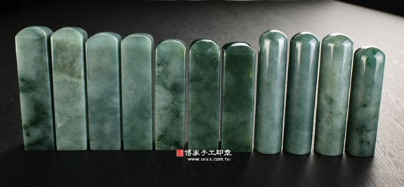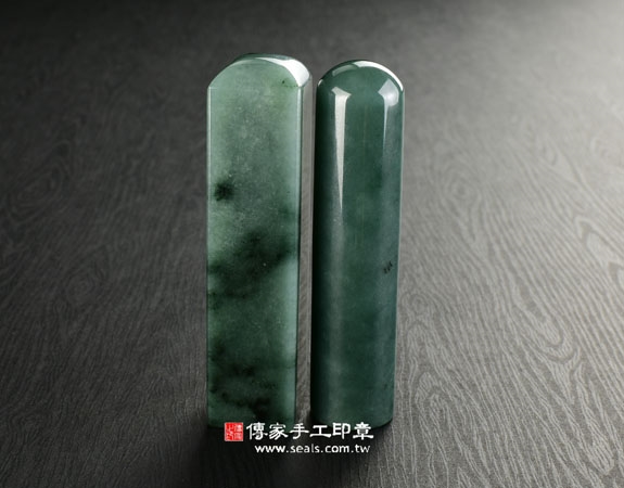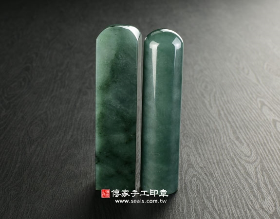 傳家手工印章印章材質示意圖:頂級油青緬甸玉印章偏綠(第三款) 印章照片示意圖