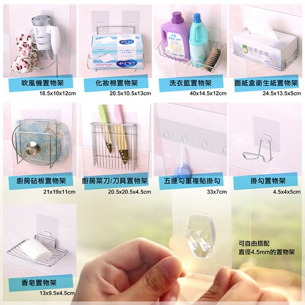 ◆免釘釘子、免鑽孔,黏貼式掛勾不需破壞家中牆面。