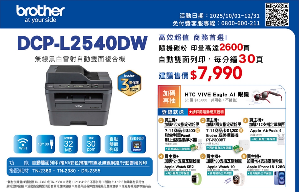 ※耗材加購登錄活動僅限TN-2360及TN-2380