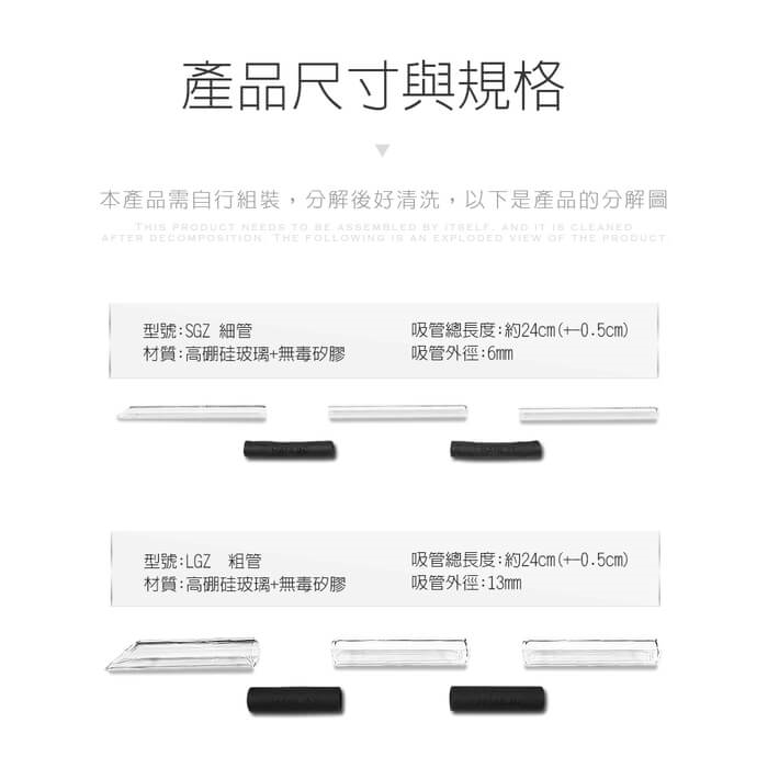 產品規格: HANLIN-環保便攜 摺疊玻璃細吸管 細吸管 型號:SGZ 細管 材質: 高硼硅玻璃+無毒矽膠 吸管總長度:約24cm(+-0.5cm) 吸管外徑:6mm 耐高溫+150度 耐低溫-20度 內容物: 吸管主體*1/吸管刷*1/收納包*1 委製商:漢麟全科技有限公司 進口商:漢麟貿易有限公司 電話: 02-22913299  產地:台灣監製中國製 備注: 1.初次拿到產品,請用吸管刷~清洗內管徑 2.可自行組裝矽膠套管(組裝方式請參考影片!) 3.收納方式請掃描二維碼 參考影片! 此商品已申請專利中,專屬著作請勿抄襲,避免侵權 |