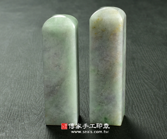傳家手工印章印章材質示意圖:頂級豆種帶紫羅蘭緬甸玉 印章照片示意圖