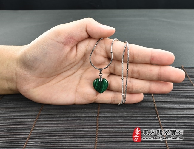 商品名稱:孔雀石愛心項鍊玉珮(愛心牌孔雀石愛心玉珮、孔雀石愛心玉墜)。孔雀石愛心,EG084。客製化訂做各種孔雀石愛心吊墜玉珮項鍊。★東方翡翠寶石保證卡