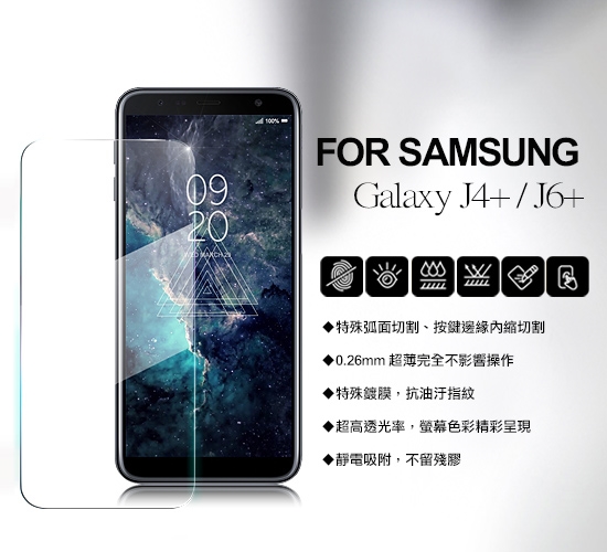 Xmart for 三星 SAMSUNG Galaxy J4+ / J6+ 薄型 9H 玻璃保護貼-非滿版
