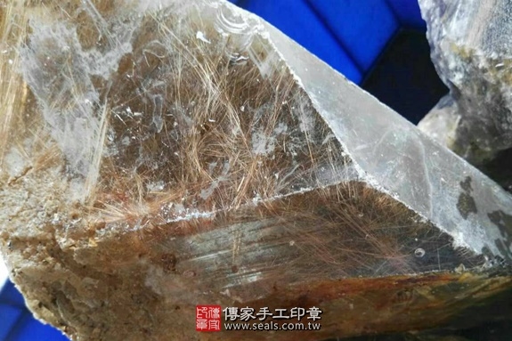 傳家手工印章印章材質示意圖:頂級金黃髮晶(第一款) 印章照片示意圖