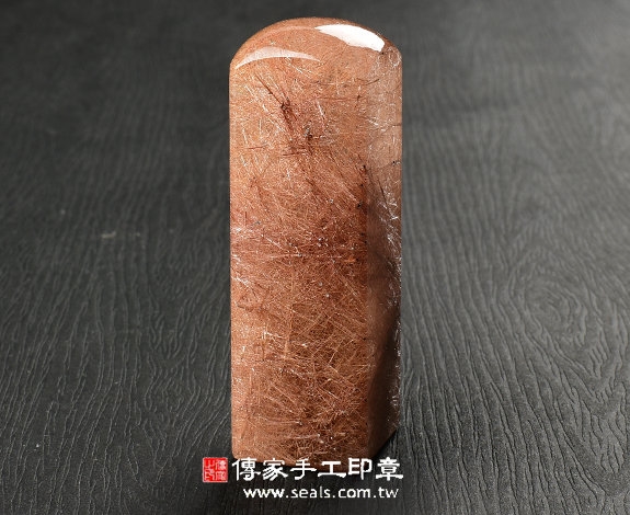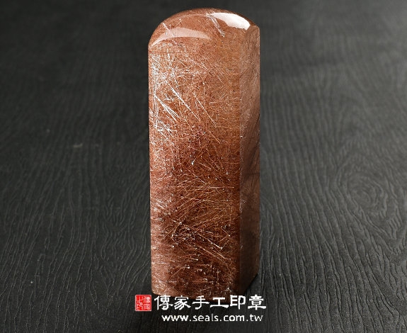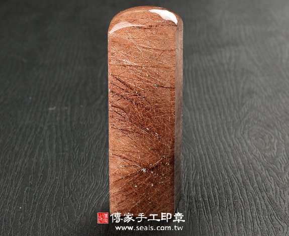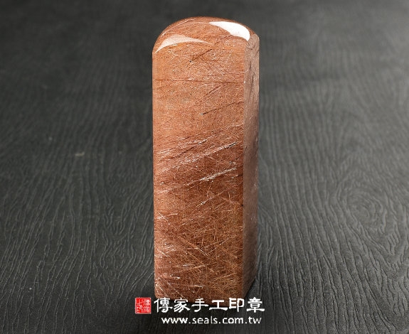 傳家手工印章印章材質示意圖:頂級紅色銅鈦兔毛髮晶 印章照片示意圖