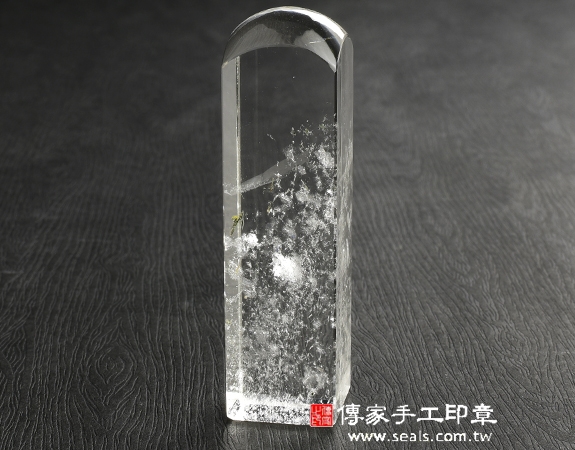 1. 傳家手工印章嚴選「天然白水晶印章」。水晶的硬度很硬,大約是7度,是常用的頂級的印材之一。