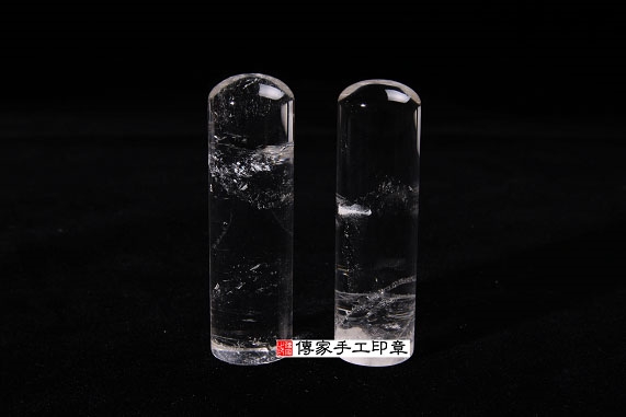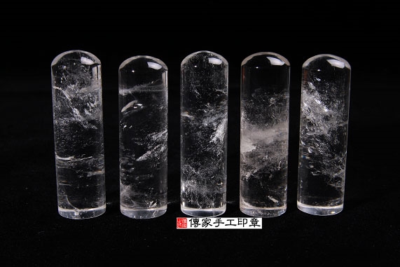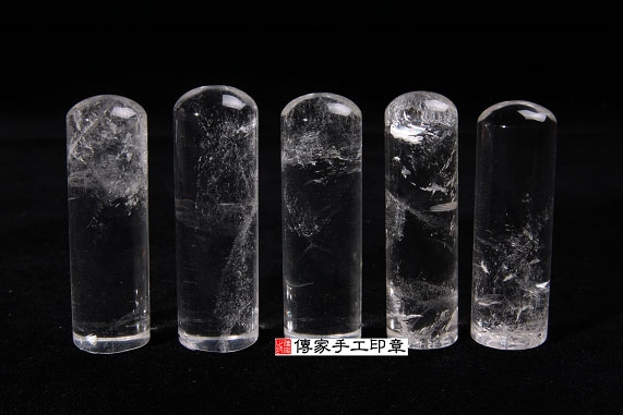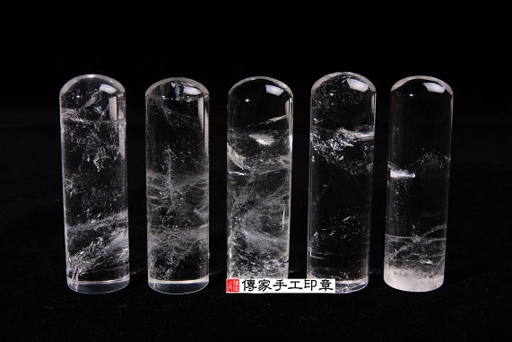 1. 傳家手工印章嚴選「天然水晶印章」(帶自然冰裂紋)。水晶的硬度很硬,大約是7度,是常用的頂級的印材之一。
