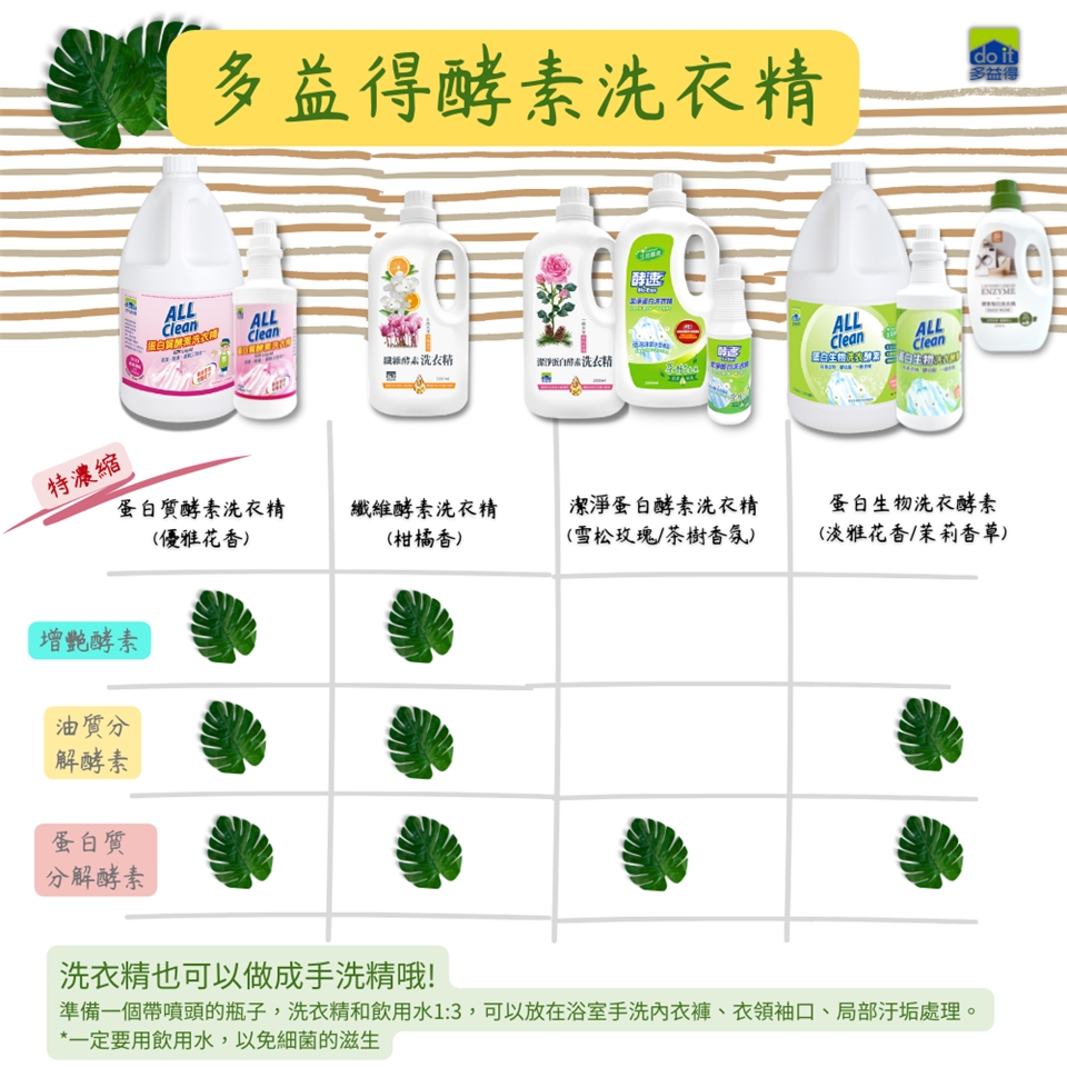 2.手洗時祇要倒入5~10cc稍加浸泡再清水清洗1~2次即可,局部污垢或衣領袖口污垢可以1:1裝 入噴瓶當衣領精使用。