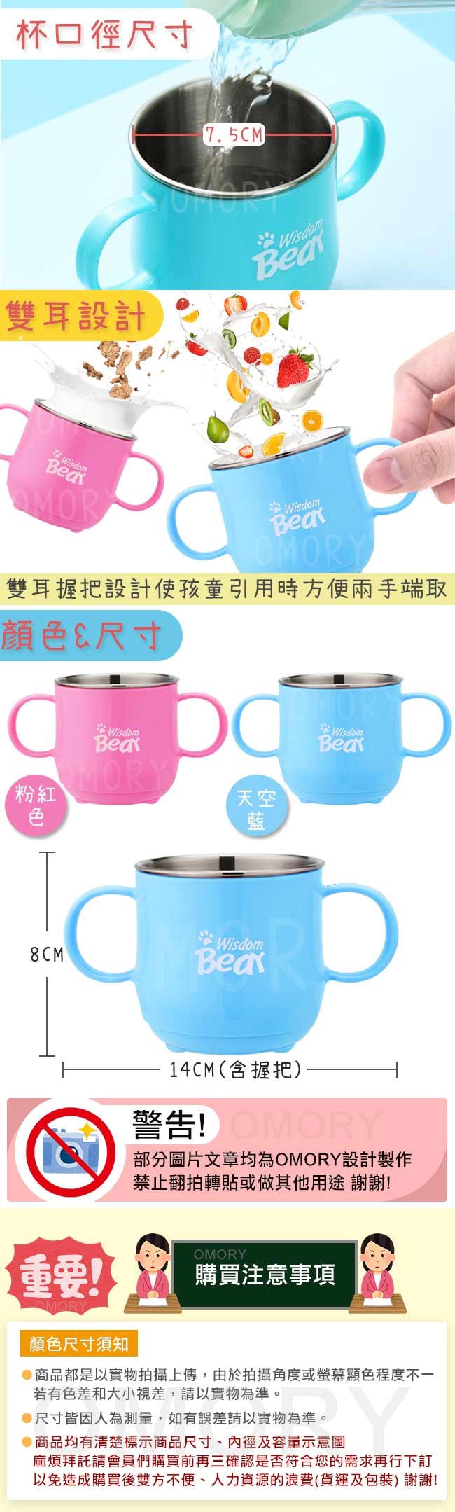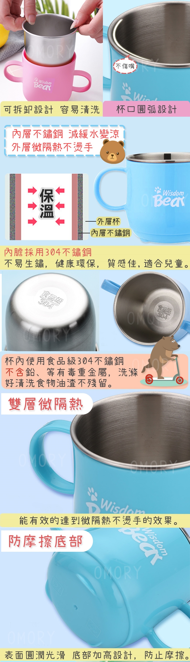 品名:【OMORY】304不鏽鋼雙耳兒童杯250ml