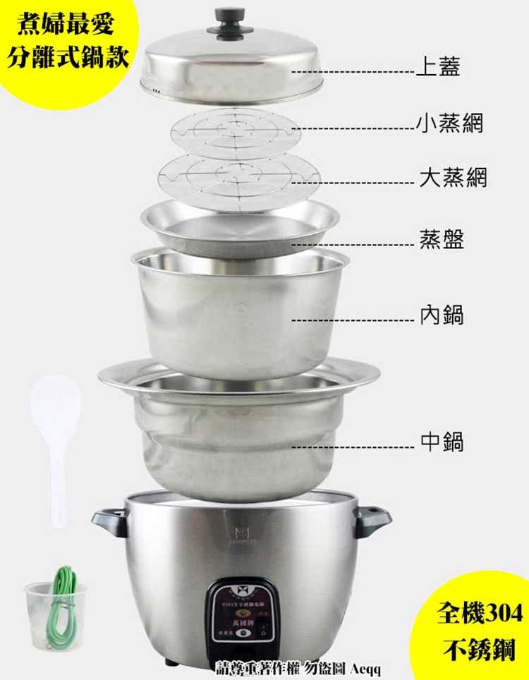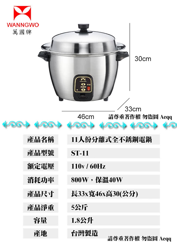 【萬國牌】11人份全304不鏽鋼分離式電鍋(ST-11)