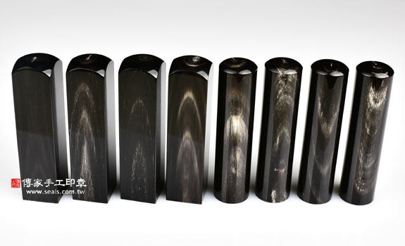 1. 傳家手工印章嚴選的高級「黑水牛角」。每枝黑水牛角都是天然的,材質溫潤、堅硬、濕性耐水,製品滋潤,水牛角更是一種珍貴的中藥。有獨特和天然的牛角紋路,花色獨一無二、色澤烏黑發亮、紋路變化多端,極具收藏特質。