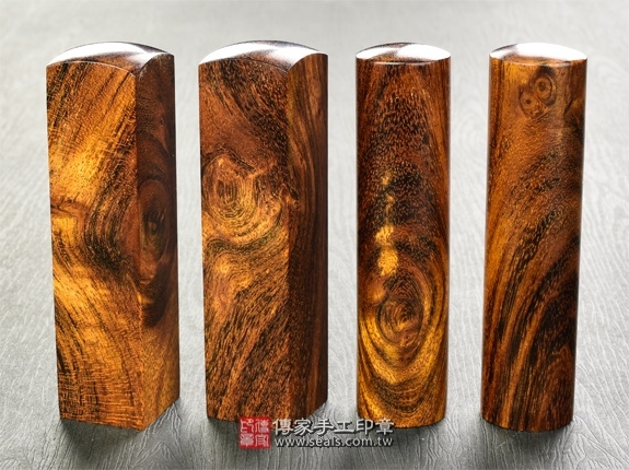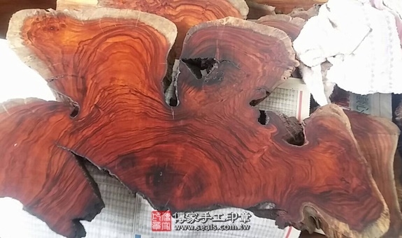 1. 傳家手工印章嚴選南美洲地區的「頂級南美洲紅檀樹瘤」。樹瘤會是一棵樹木的極品。南美洲紅檀樹瘤的顏色為紅褐色,會隨著時間越久,顏色會越來越深紅,印身上會有深淺相間的黑色的線條,印章的外觀具有自己的獨特性又好看。