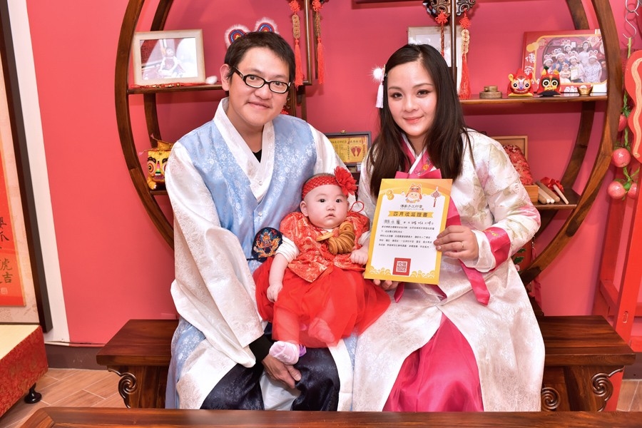 l 抓周主角「寶寶一人」,免費穿古裝禮服。「中式禮服、日式禮服、韓式禮服」大人和小孩有200套任選。