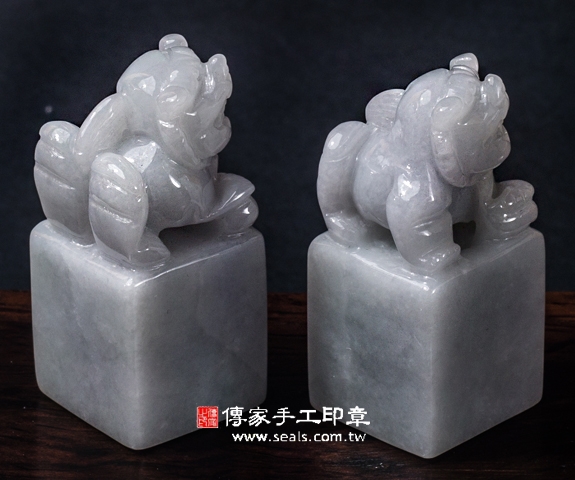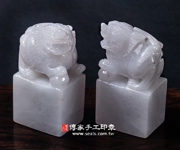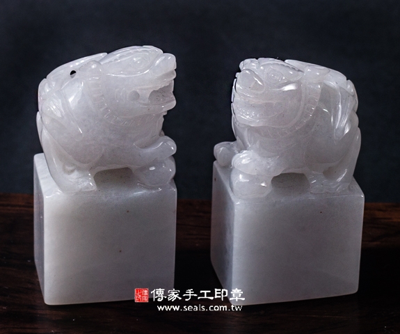 傳家手工印章印章材質示意圖:頂級白翡精雕貔貅緬甸玉 印章照片示意圖