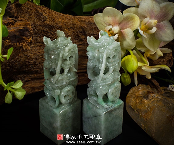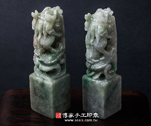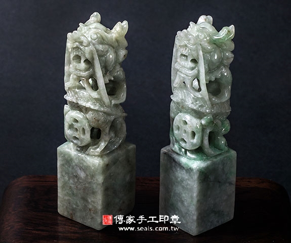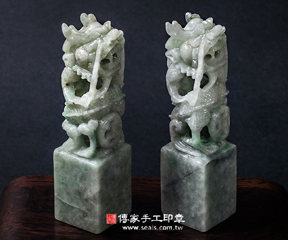 傳家手工印章印章材質示意圖:頂級龍柱緬甸玉(簍空雕) 印章照片示意圖