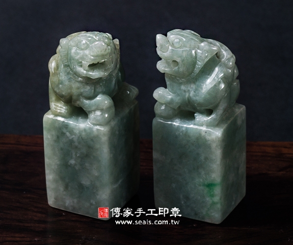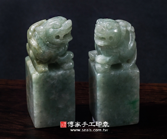 傳家手工印章印章材質示意圖:頂級豆種精雕貔貅翡翠 印章照片示意圖