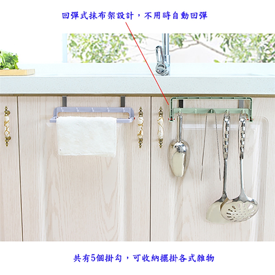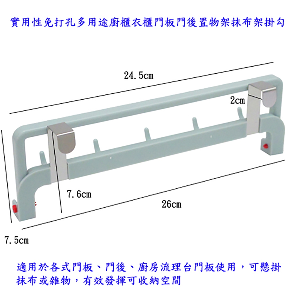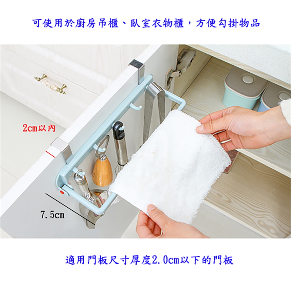 ■實用性免打孔多用途廚櫃衣櫃門板門後置物架抹布架掛勾。