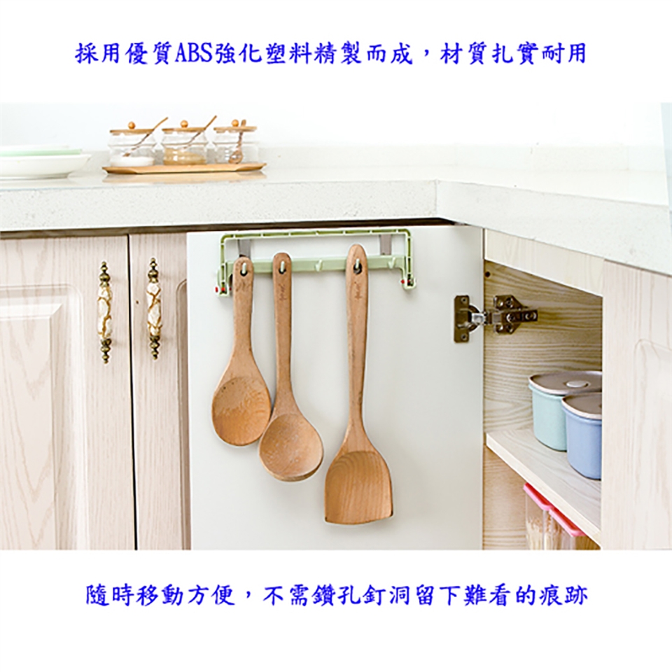■適用於各式門板、門後、廚房流理台門板使用,可懸掛抹布或雜物,有效發揮可收納空間。