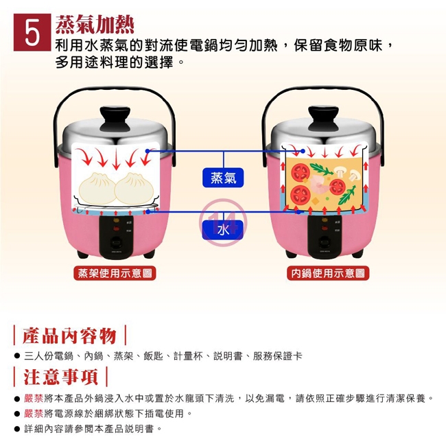 ◎煮飯、煮粥、煮湯、滷燉、蒸食等多功能