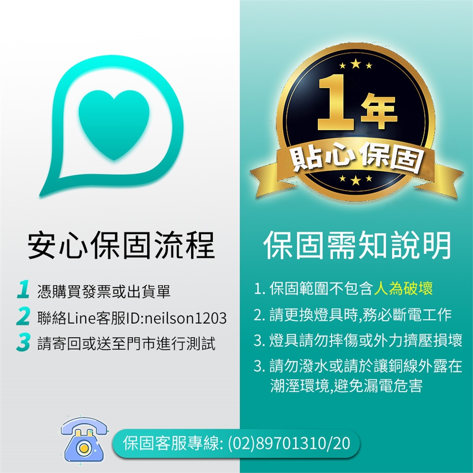 7.真正一年換新(非人為損壞正常使用下,不可用於調光燈具&密閉燈具)
