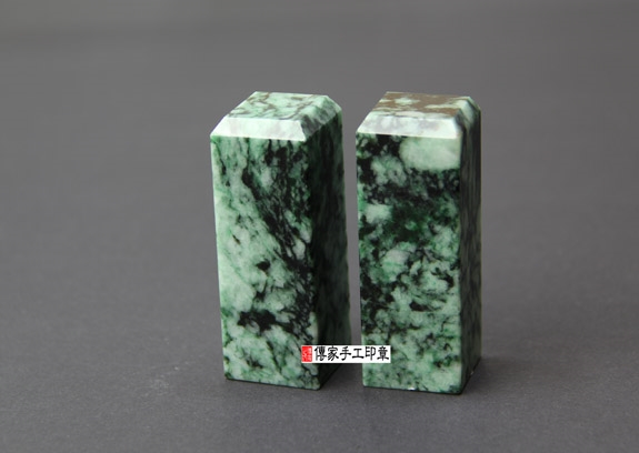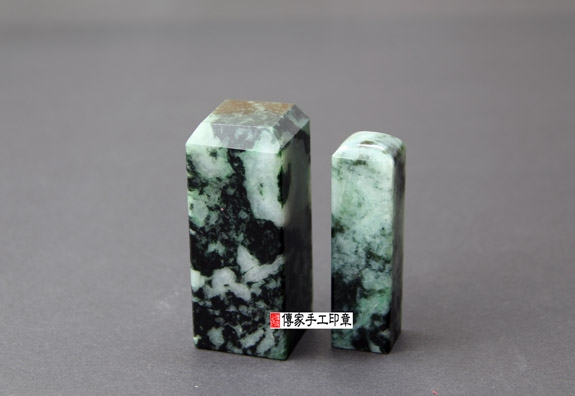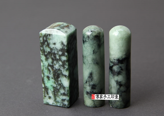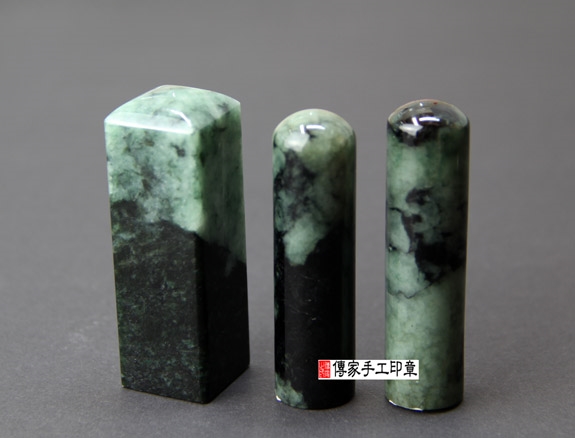 傳家手工印章印章材質示意圖:頂級花青種緬甸玉翡翠 印章照片示意圖