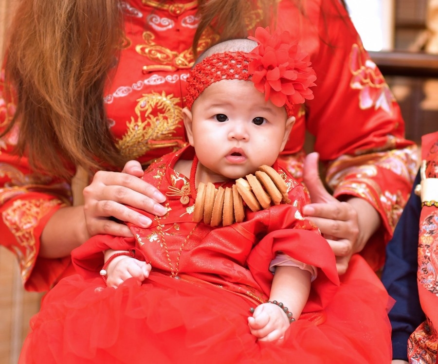 (1) 以嬰兒剃頭為例,剃頭的剃刀、嬰兒十禮的道具和吉祥話儀式、拍照、證書、光碟燒錄…等等,都要花很多心力。