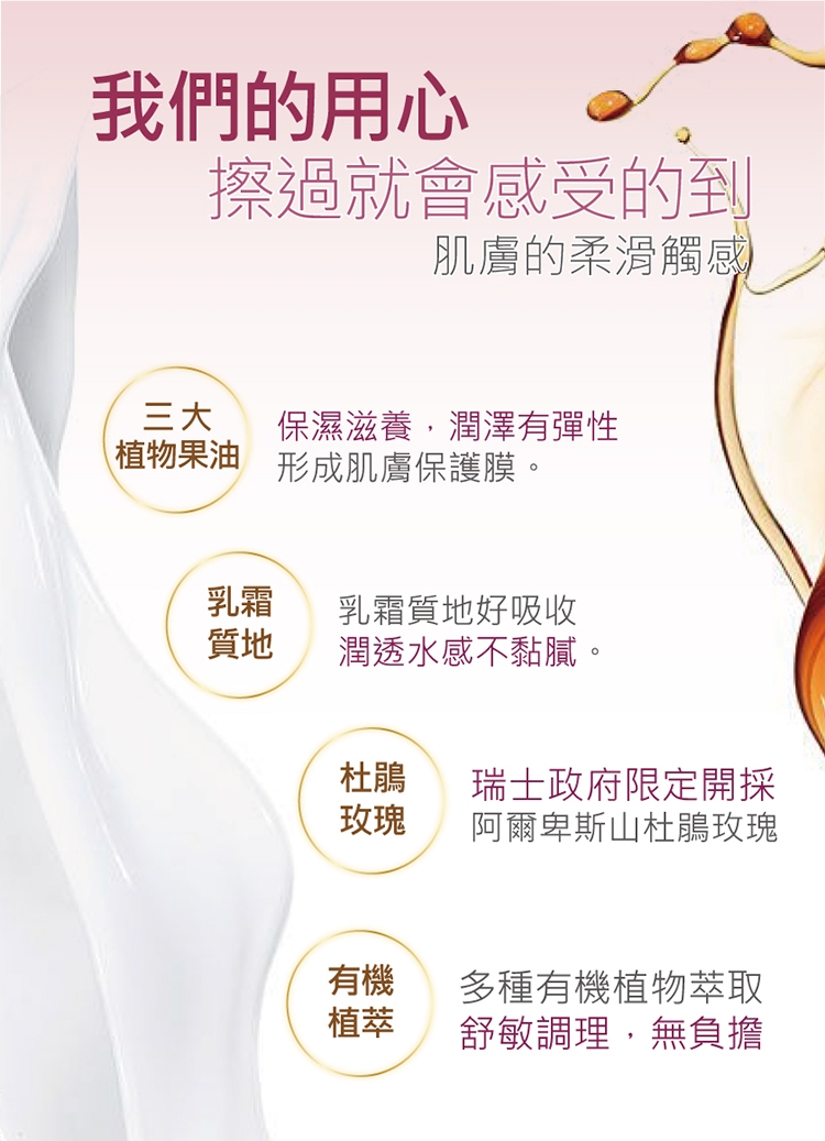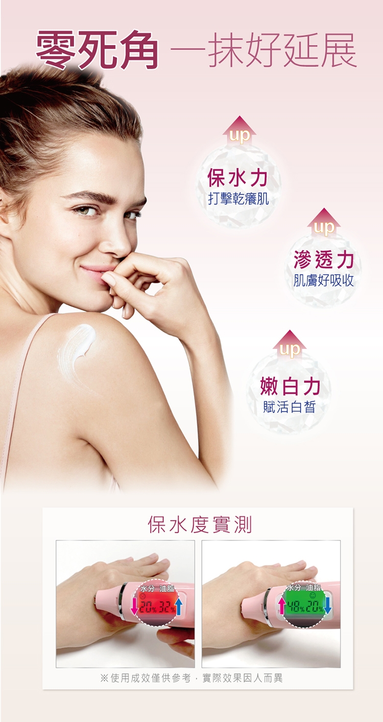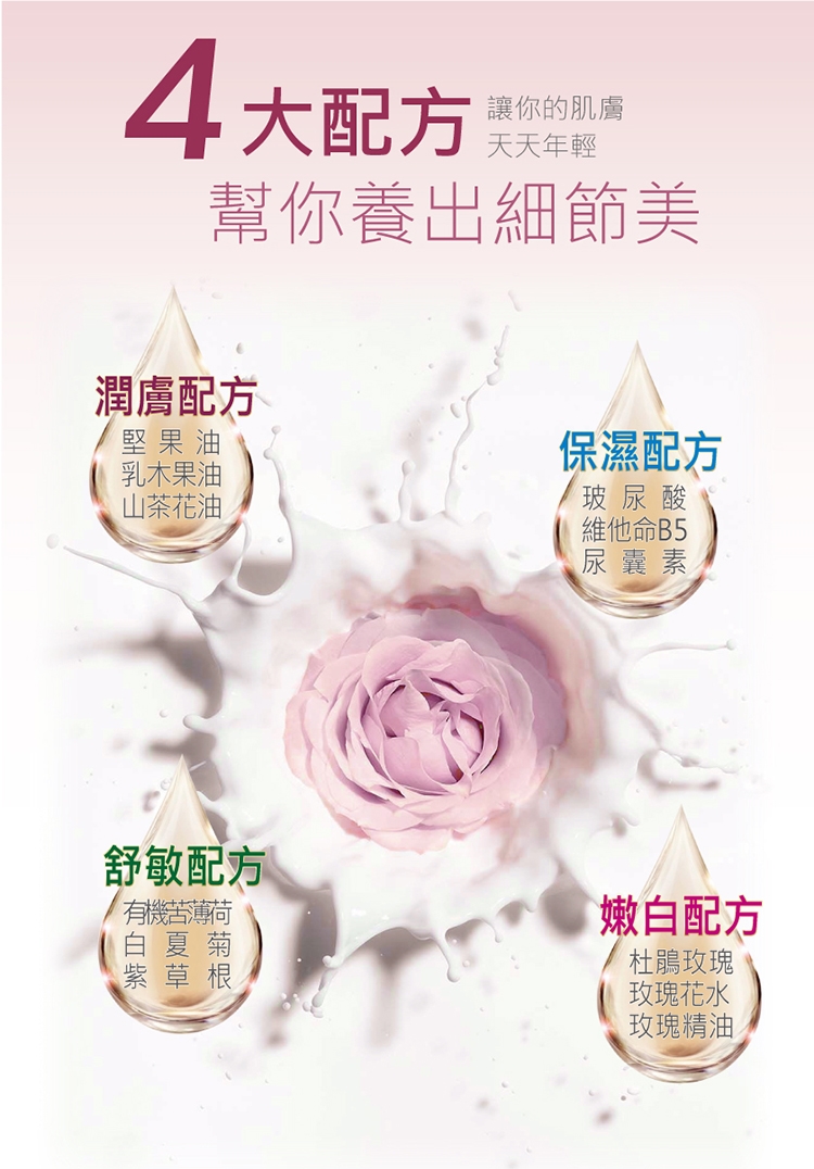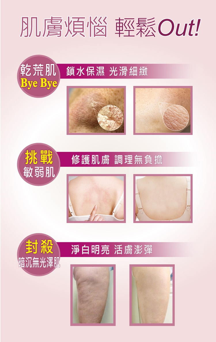 取適量,按摩於身體肌膚,針對粗糙的部位,可加強使用。