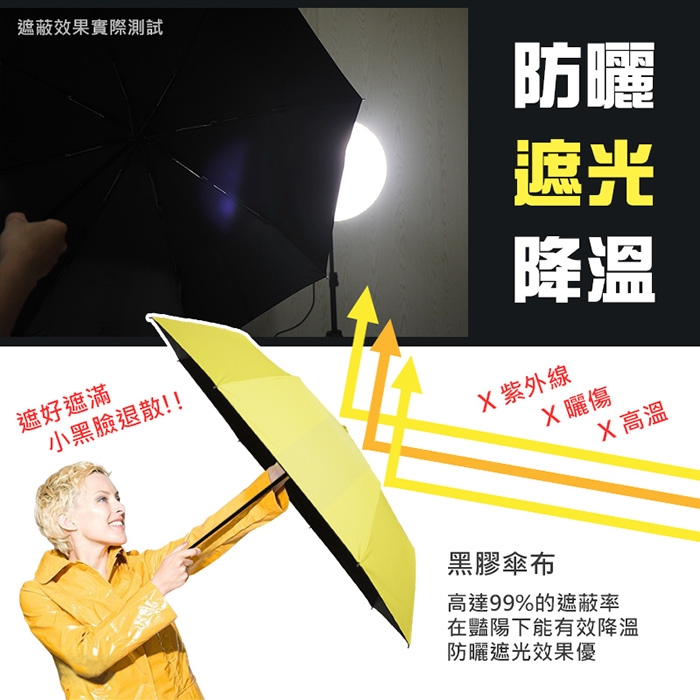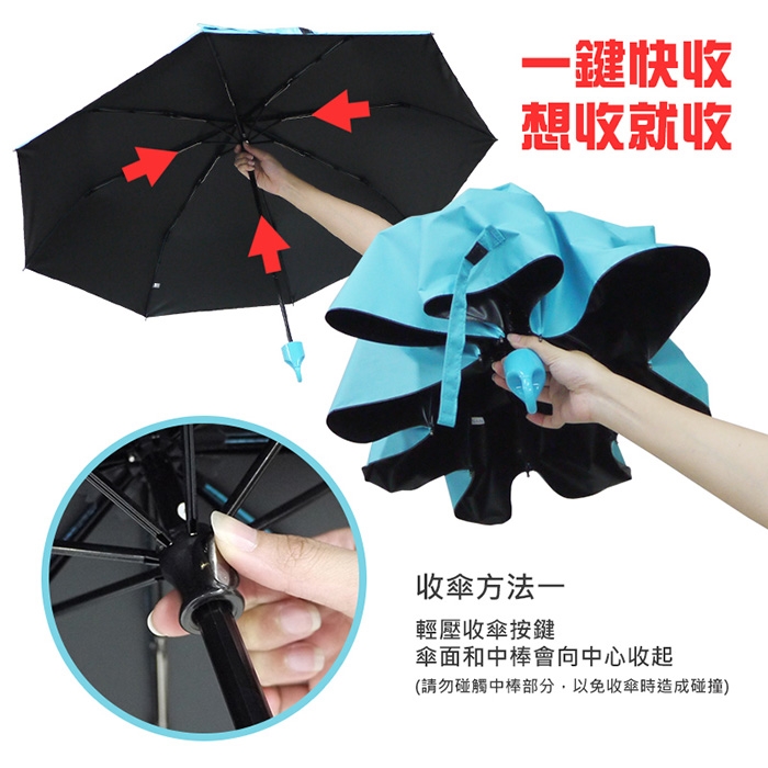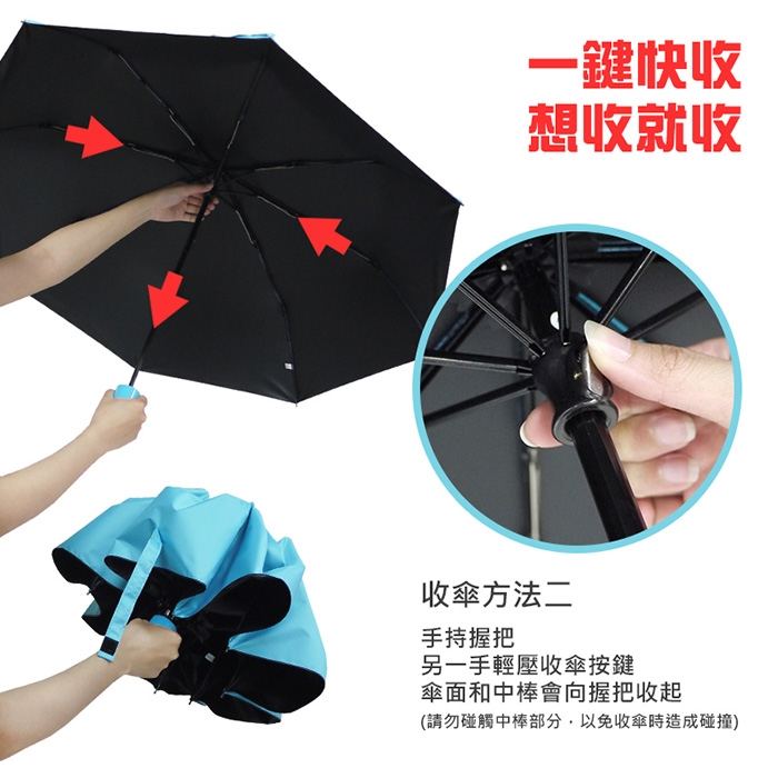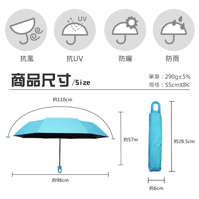 7.黑膠/色膠傘布屬於特殊傘布,初次使用均會產生傘布沾黏(此為正常現象),多次使用後即可改善。