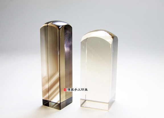 1. 傳家手工印章嚴選高級「全美天然茶晶公司大小章」。茶晶的硬度很硬,大約是7度,是頂級印材之一。