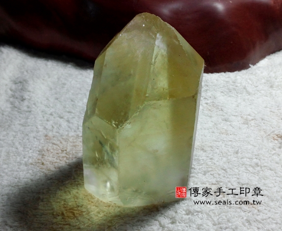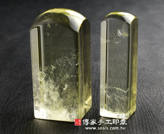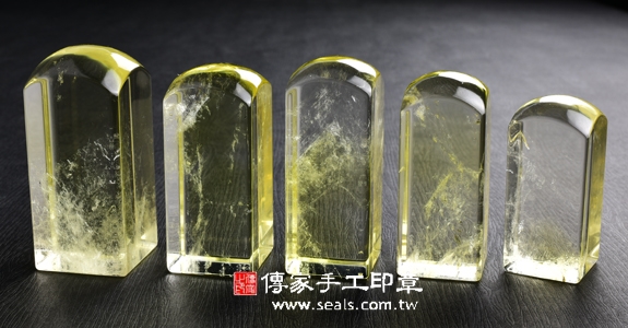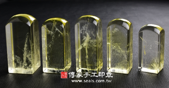 1. 傳家手工印章嚴選高級「天然黃水晶印章」。水晶的硬度很硬,大約是7度,是頂級印材之一。