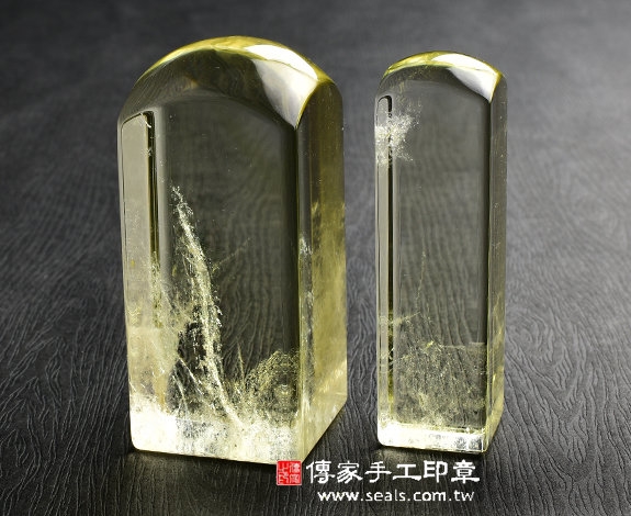 傳家手工印章印章材質示意圖:頂級黃水晶 印章照片示意圖
