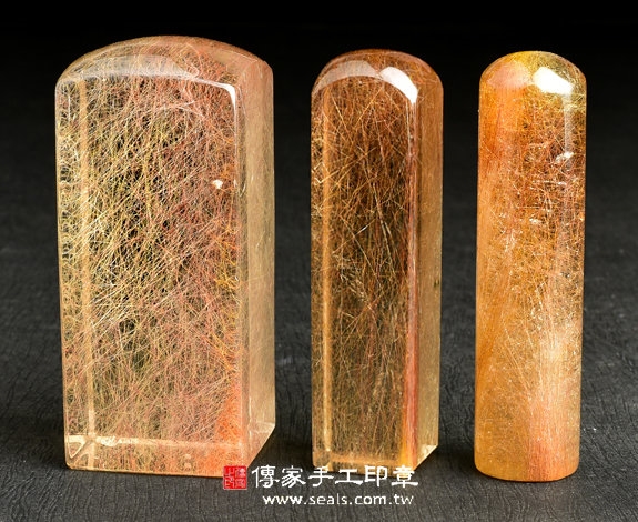 1. 傳家手工印章嚴選高級「紅髮晶印章」。水晶的硬度很硬,大約是7度,是頂級印材之一。