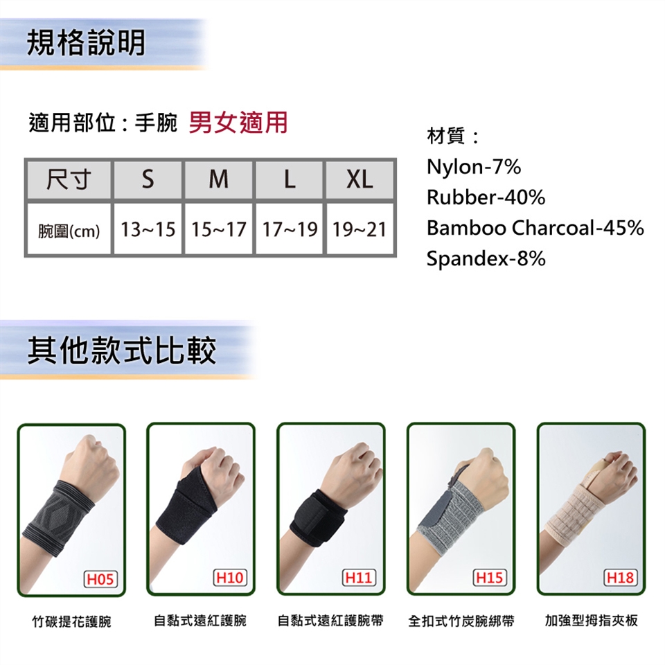 材質:Nylon 7%/Rubber 40%/Bamboo Charcoal 45% / Spandex 8%