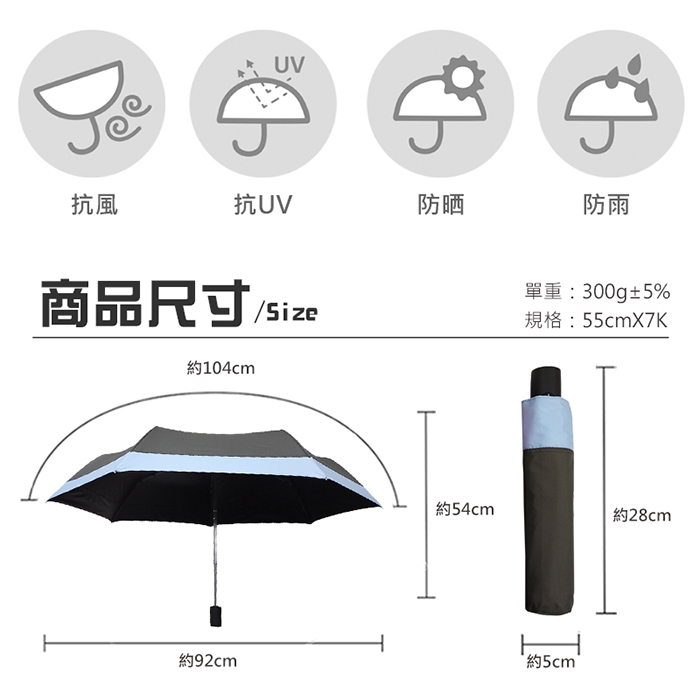 7.黑膠/色膠傘布屬於特殊傘布,初次使用均會產生傘布沾黏(此為正常現象),多次使用後即可改善。