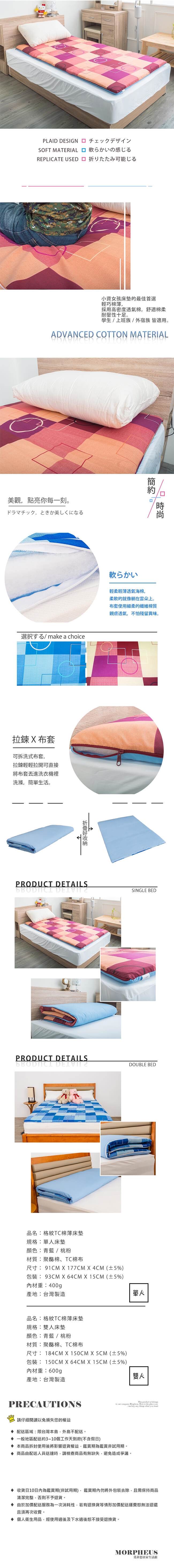 品名:格紋TC棉薄床墊