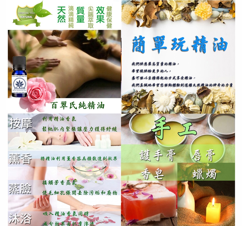 2.可加入適量精油於沐浴乳.洗髮精.乳液等或加入手工皂、蠟燭等。