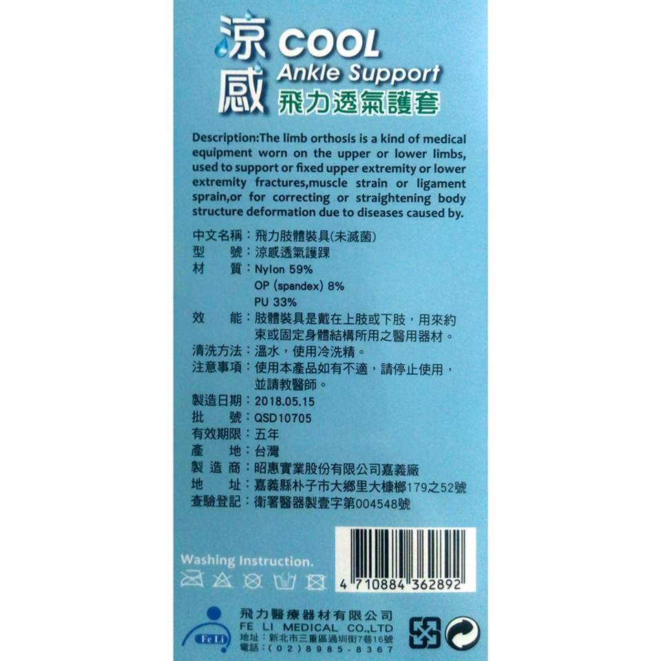 產品名稱:飛力肢體裝具 (未滅菌)