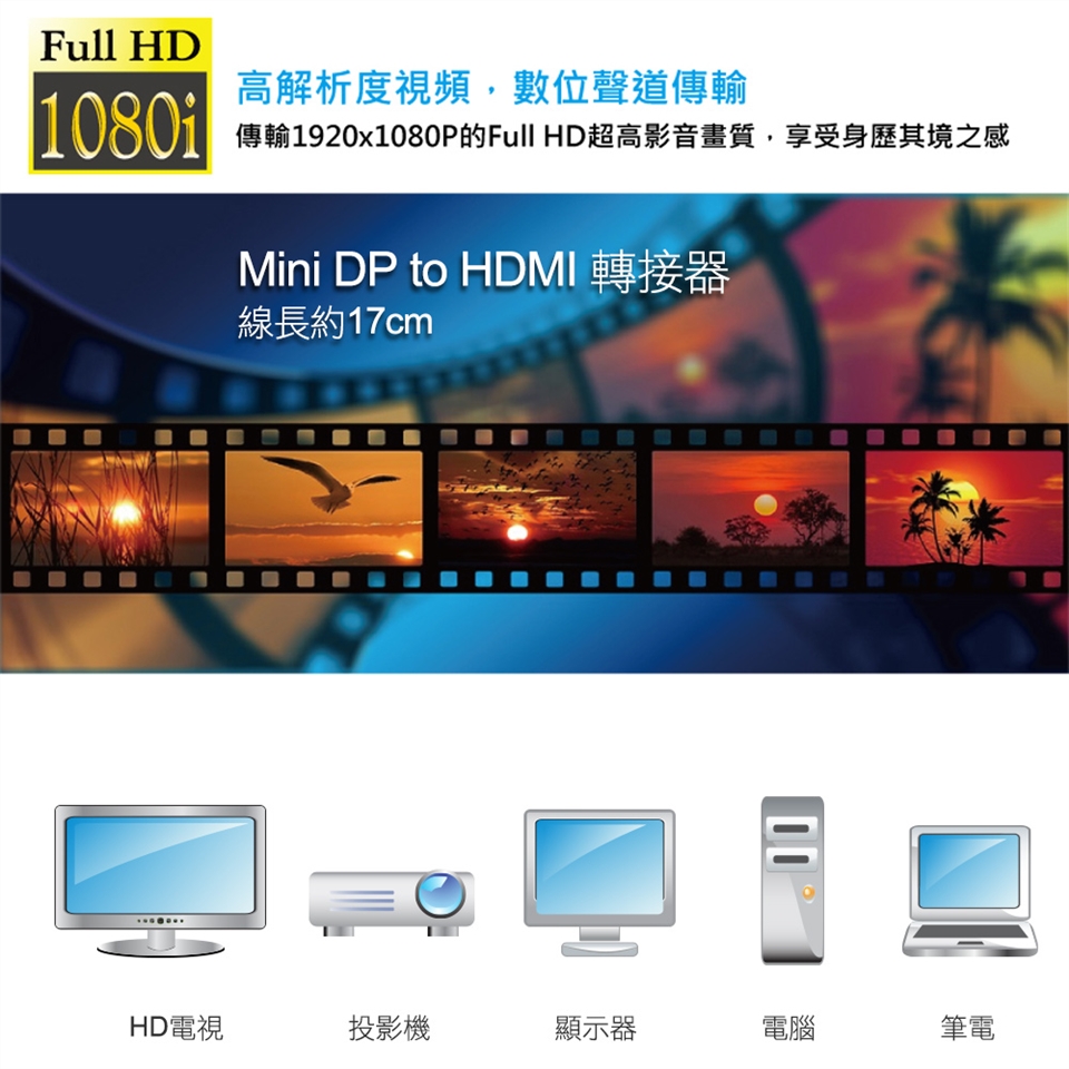 ◆ MiniDisplayport轉HDMI數位訊號傳輸。
