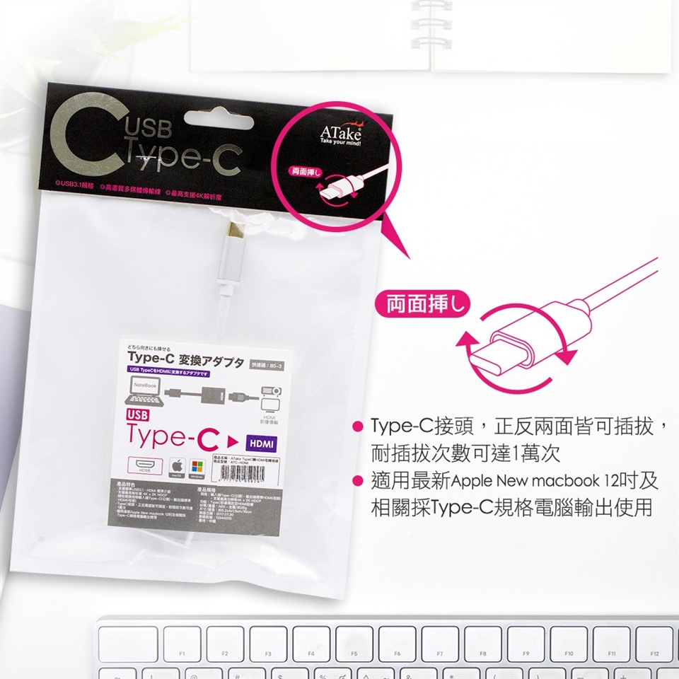 規格:輸入端Type-C(公頭),輸出端HDMI (母頭),支援最高分辨率4K x 2K HDCP